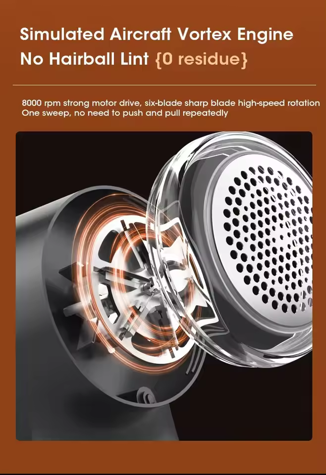 【Efficient and Durable Lint Remover】- Powered by a powerful motor at 8000 rpm, it cuts 132000 times per minute without damaging clothesThe 6-leaf precision steel blade efficiently removes lint and small hair balls, flexibly fits clothing, and works without blind spots.