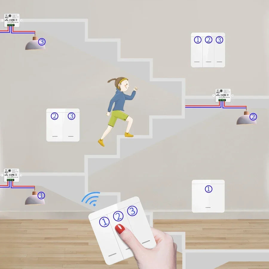 TNCE RF433MHz Mini Wireless Remote Control Light Switch 1/2/3 Gang 86 Wall Transmitter Switch Button Wall Panel Switch